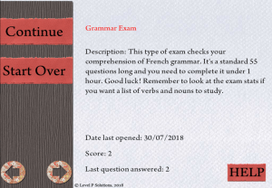 SelectScreen The application comes with simulations of two written exams : the reading comprehension exam and the grammar exam.